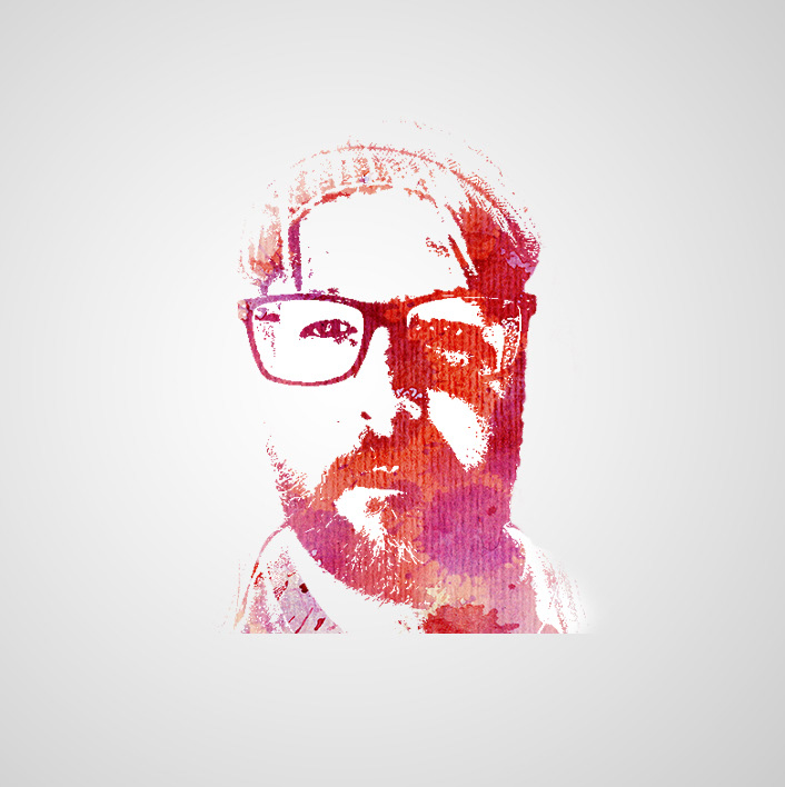 Colors were alter to reflect the websites overall color scheme. The portrait was placed in an ink blot adding more visual flair.